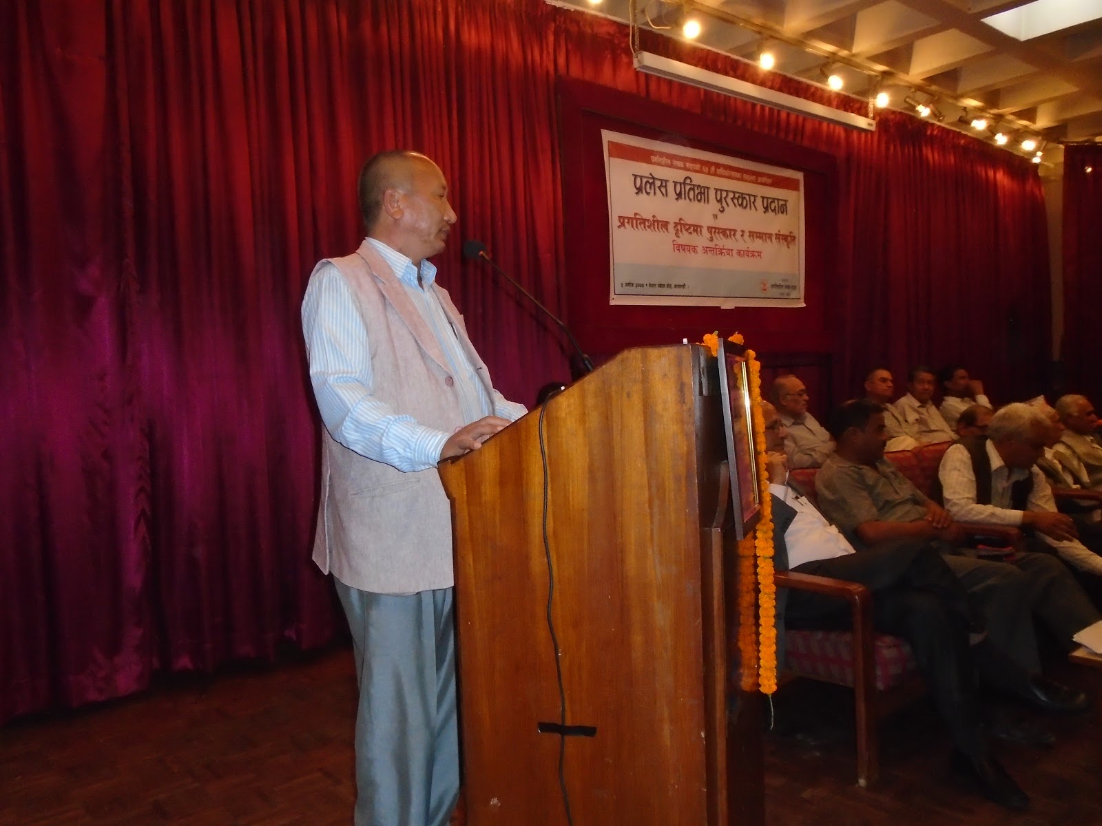 माओवादी केन्द्रका अध्यक्ष प्रचण्डलाई एउटा संस्थाले सम्मान गर्ने निर्णय गर्यो । उहाँले स्विकार्नु पनि भयो । पछि प्रलेसका साथीहरुको ठूलो दबाव गयो होला अथवा सल्लाह र सुझाव गए होलान्, उहाँले त्यो सम्मान ग्रहण नगर्ने निर्णय लिनुभयो । यही सन्दर्भबाट नै प्रलेस पुरस्कांर र सम्मान संस्कृतिलाई लिई आजको यो कार्यक्रम गर्ने निष्कर्षमा पुगेको हो भन्ने मलाई लाग्दछ ।